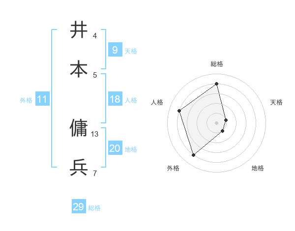 井本 傭兵さんを姓名の画数から五運を鑑定