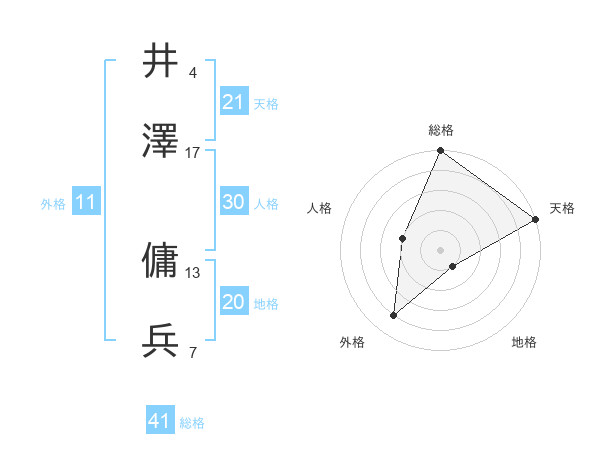 井澤 傭兵さんの天格は21画の5点!