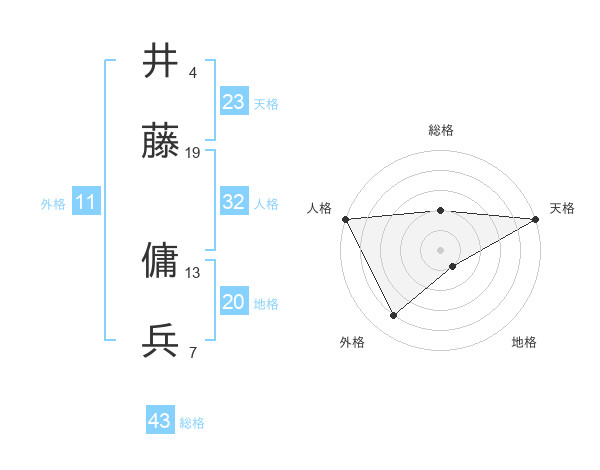 井藤 傭兵さんを姓名の画数から五運を鑑定