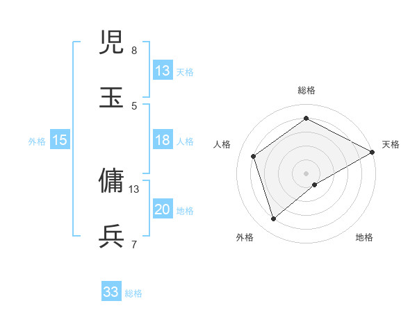 児玉 傭兵さんを姓名の画数から五運を鑑定