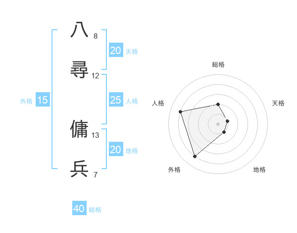 八尋 傭兵さんの天格は20画の1点!