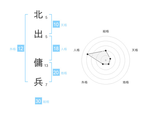 北出 傭兵さんの地格は20画の1点!