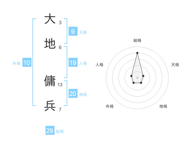 大地 傭兵さんの総格は29画の4点!