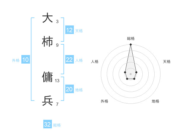 大柿 傭兵さんを姓名の画数から五運を鑑定