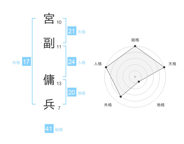 宮副 傭兵さんの天格は21画の5点!
