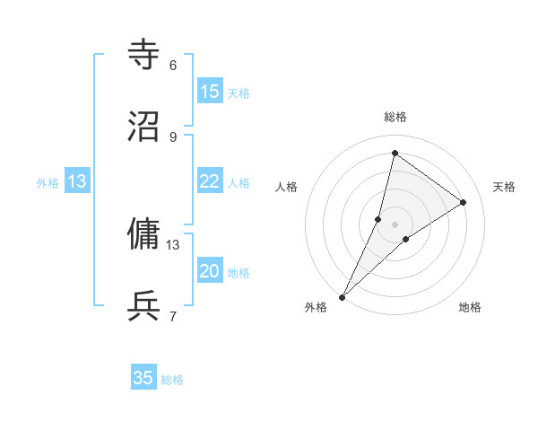 寺沼 傭兵さんの総格は35画の4点!