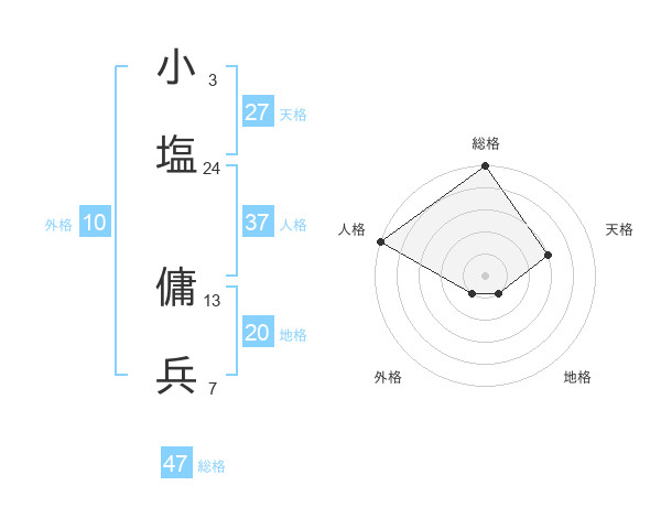 小塩 傭兵さんの総格は47画の5点!