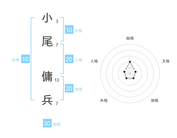 小尾 傭兵さんの天格は10画の1点!