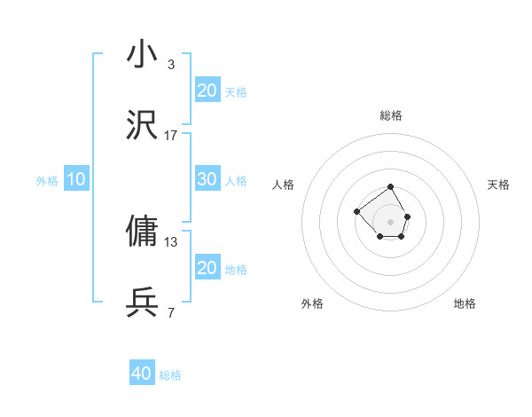 小沢 傭兵さんを姓名の画数から五運を鑑定