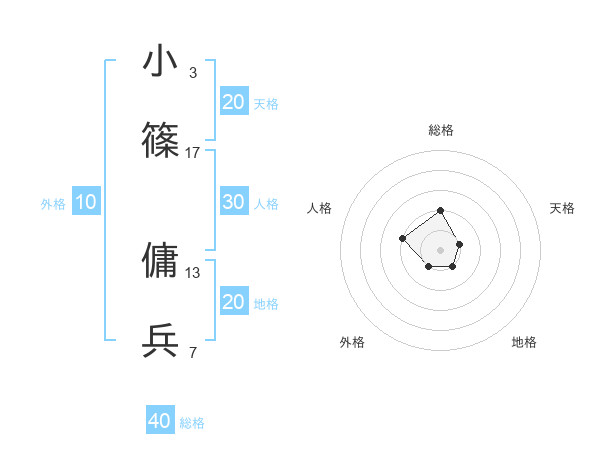 小篠 傭兵さんの地格は20画の1点!