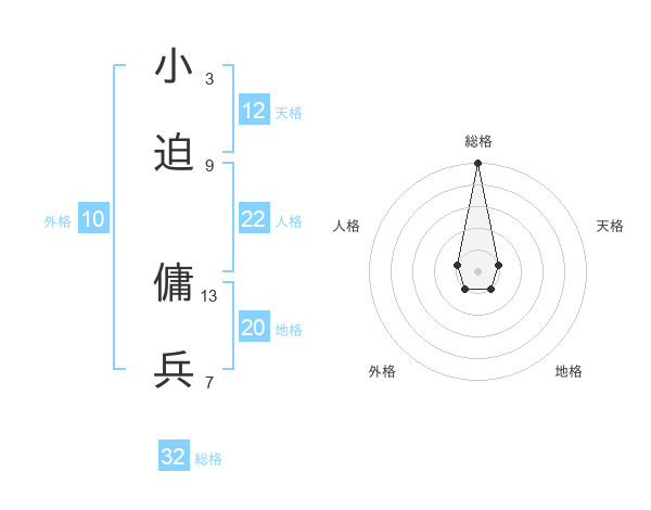 小迫 傭兵さんの総格は32画の5点!