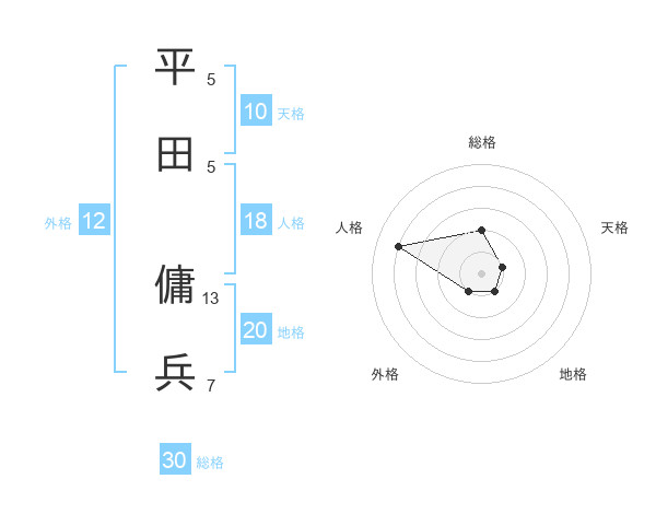 平田 傭兵さんの総格は30画の2点!
