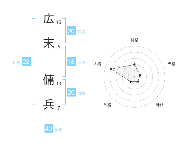 広末 傭兵さんの総格は40画の2点!