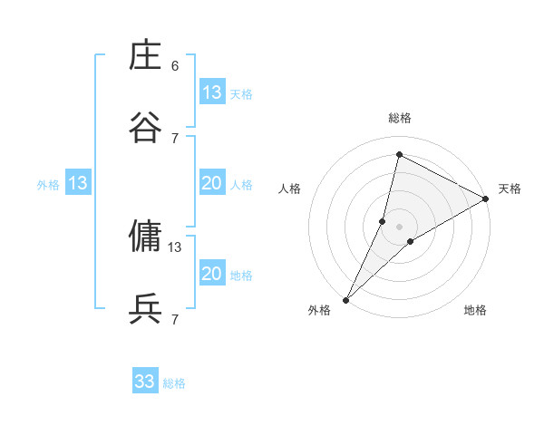 庄谷 傭兵さんの天格は13画の5点!