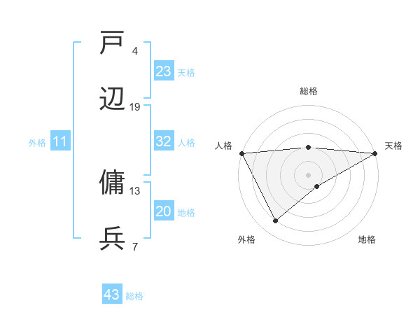 戸辺 傭兵さんの天格は23画の5点!