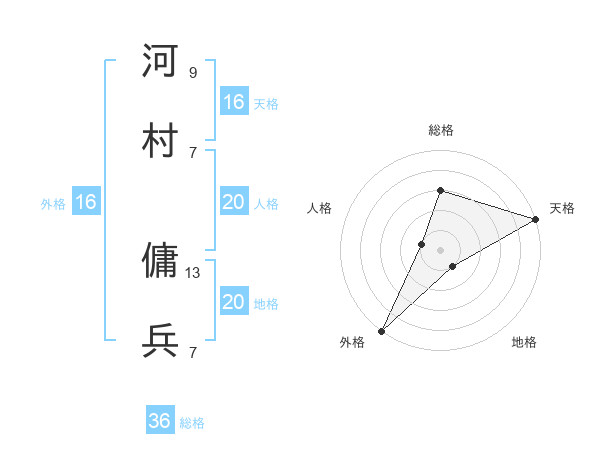 河村 傭兵さんの天格は16画の5点!
