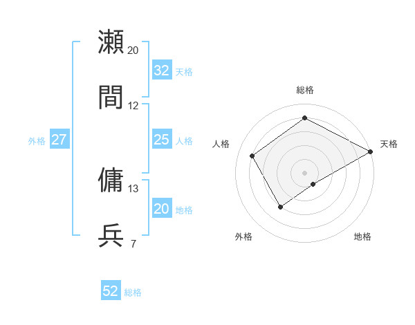 瀬間 傭兵さんを姓名の画数から五運を鑑定