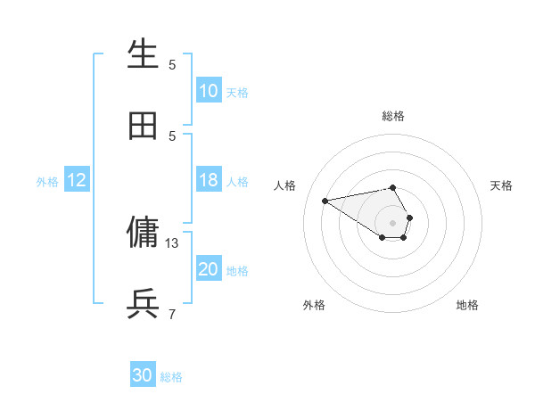 生田 傭兵さんの総格は30画の2点!