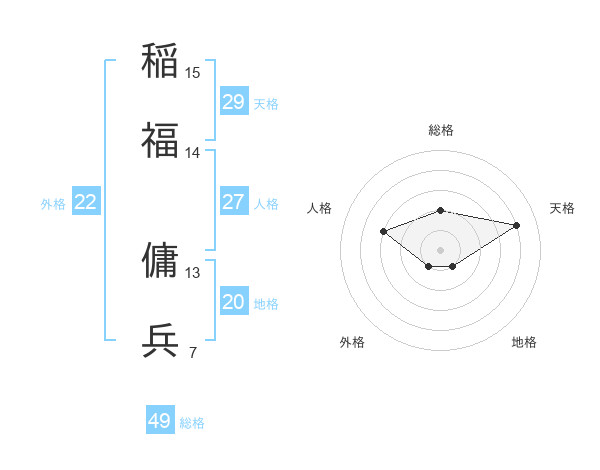 稲福 傭兵さんを姓名の画数から五運を鑑定