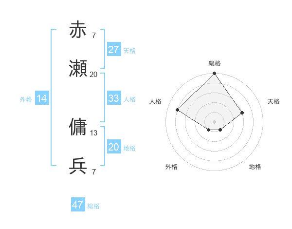 赤瀬 傭兵さんの総格は47画の5点!