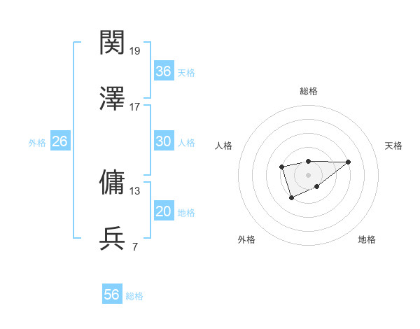 関澤 傭兵さんの総格は56画の1点!