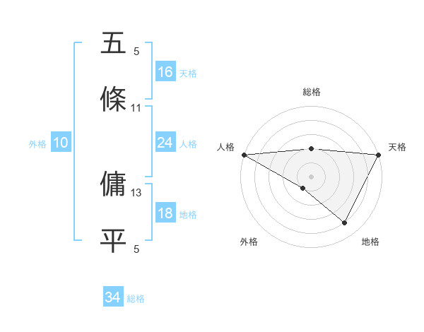 五條 傭平さんの天格は16画の5点!