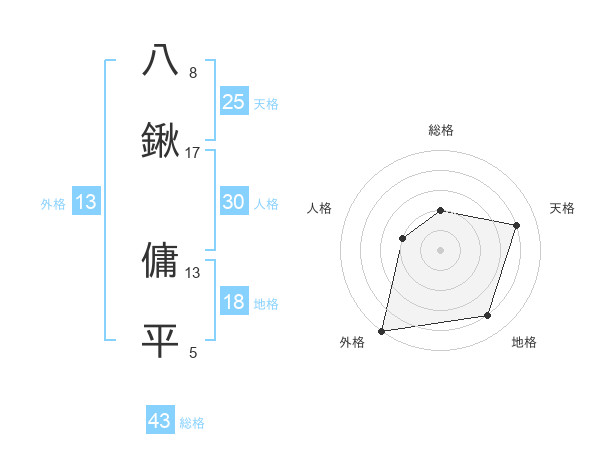 八鍬 傭平さんの外格は13画の5点!