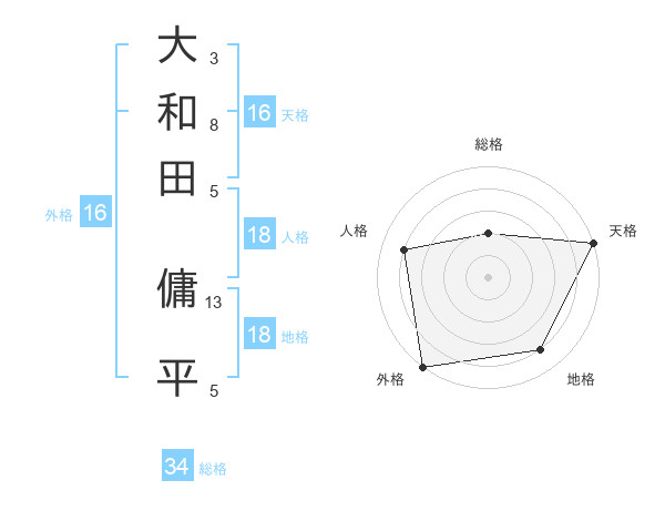 大和田 傭平さんの天格は16画の5点!