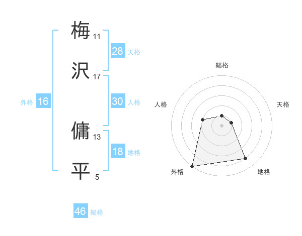 梅沢 傭平さんを姓名の画数から五運を鑑定