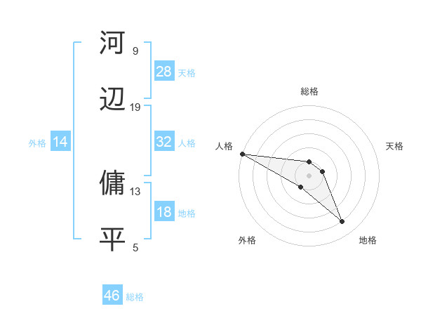 河辺 傭平さんの総格は46画の1点!