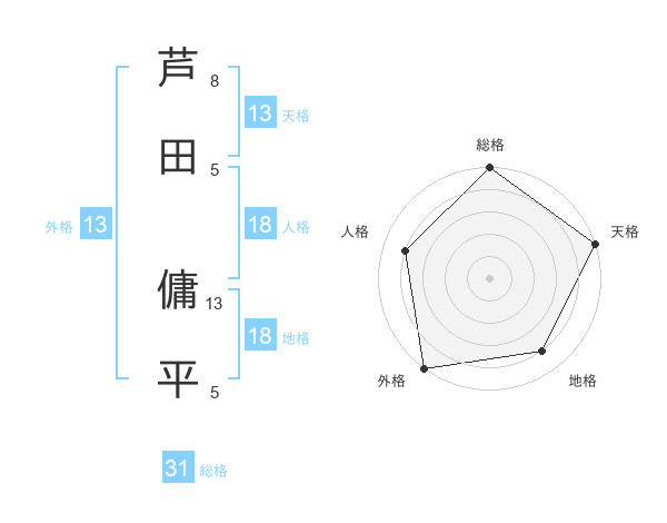 芦田 傭平さんの総格は31画の5点!