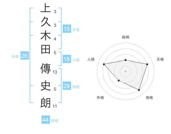 上久木田 傳史朗さんを姓名の画数から五運を鑑定