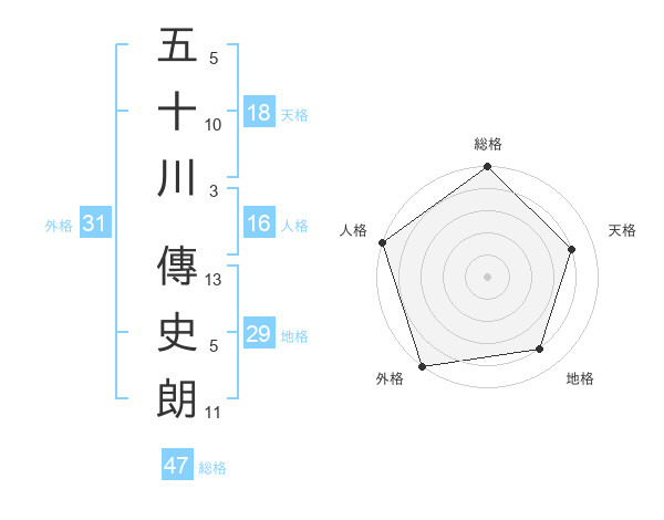 五十川 傳史朗さんを姓名の画数から五運を鑑定