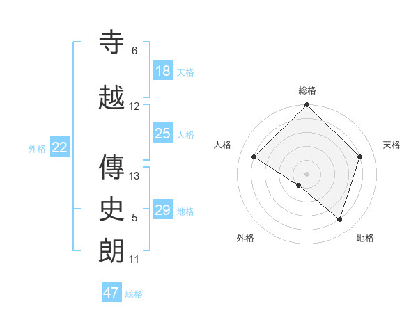 寺越 傳史朗さんを姓名の画数から五運を鑑定
