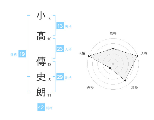 小髙 傳史朗さんを姓名の画数から五運を鑑定
