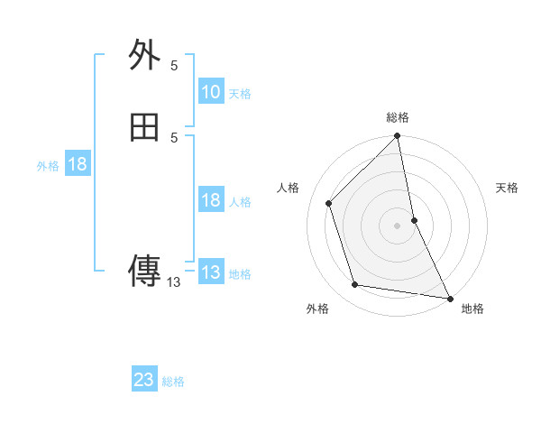 外田 傳さんの総格は23画の5点!