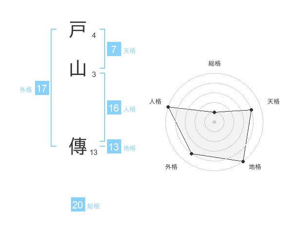 戸山 傳さんの外格は17画の4点!