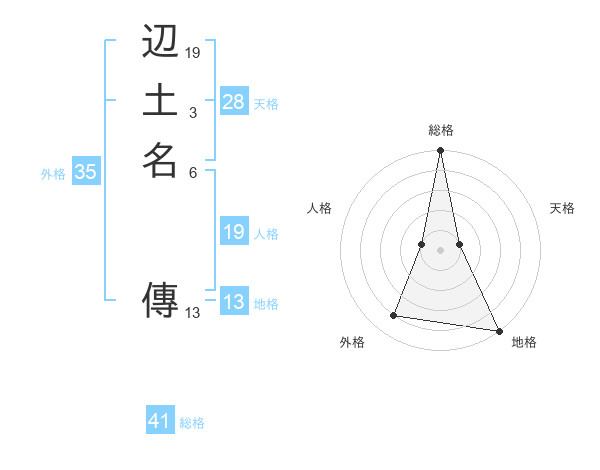 辺土名 傳さんを姓名の画数から五運を鑑定