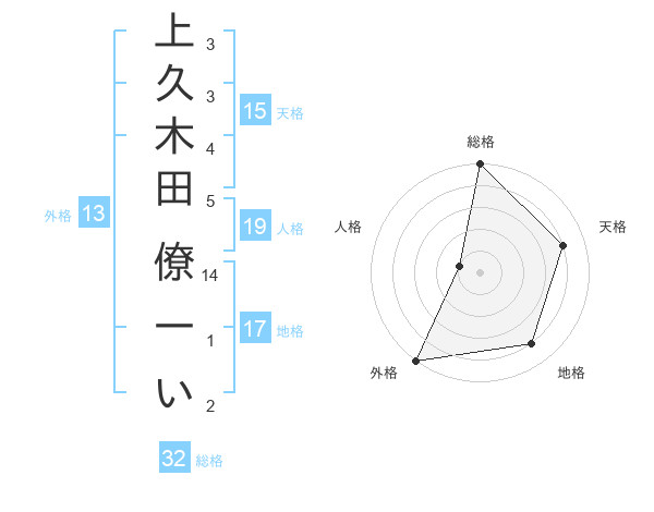 上久木田 僚一いさんを姓名の画数から五運を鑑定