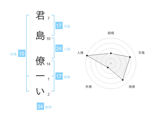 君島 僚一いさんを姓名の画数から五運を鑑定
