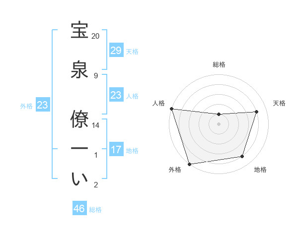 宝泉 僚一いさんの外格は23画の5点!