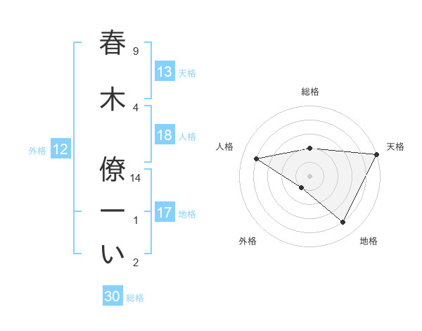 春木 僚一いさんを姓名の画数から五運を鑑定