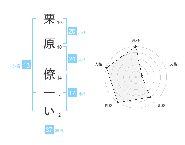 栗原 僚一いさんを姓名の画数から五運を鑑定