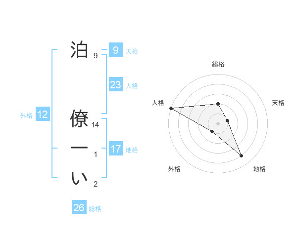 泊 僚一いさんの総格は26画の2点