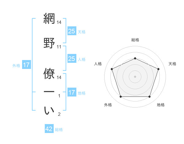 網野 僚一いさんを姓名の画数から五運を鑑定