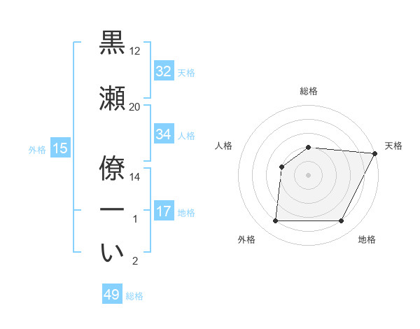 黒瀬 僚一いさんを姓名の画数から五運を鑑定