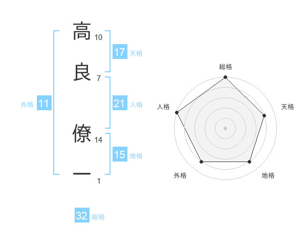 高良 僚一さんの天格は17画の4点!
