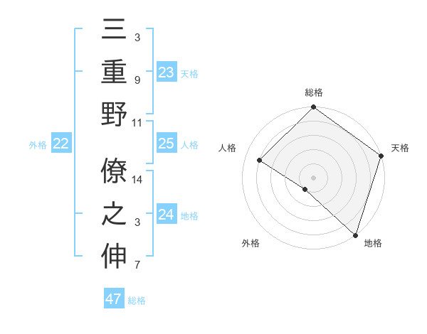 三重野 僚之伸さんを姓名の画数から五運を鑑定