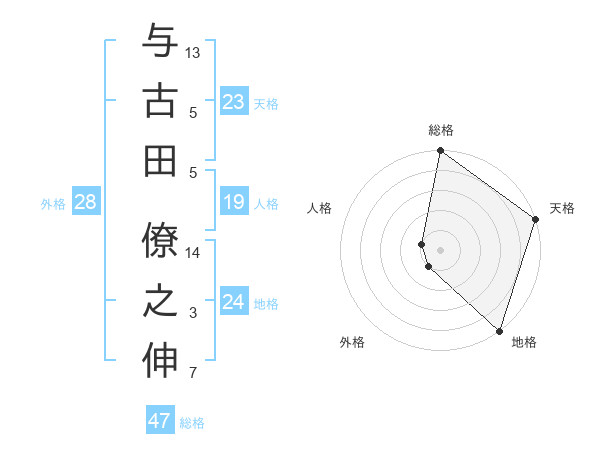 与古田 僚之伸さんを姓名の画数から五運を鑑定