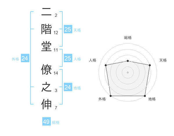 二階堂 僚之伸さんを姓名の画数から五運を鑑定